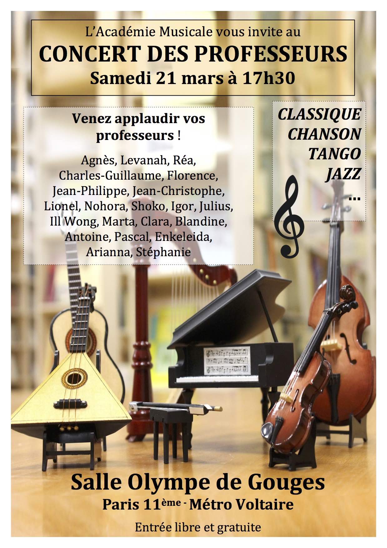 Compte tenu du CORONAVIRUS le concert des professeurs du 21 mars à 17h30 : n'aura pas lieu salle Olympe de Gouges.