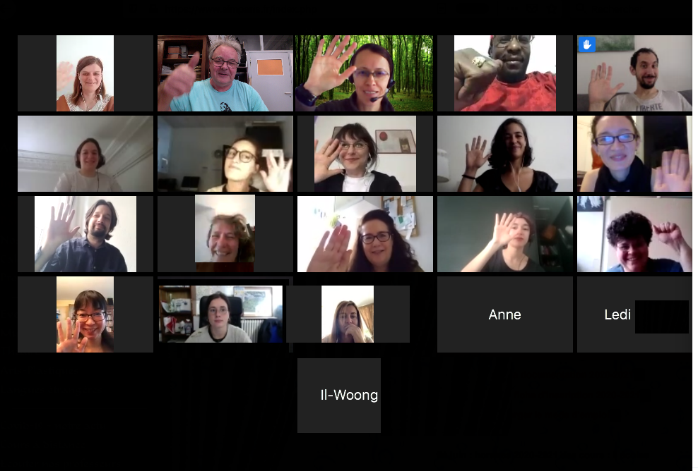 AIMP-Pôle Formation : déroulement à distance de la formation "Mobiliser les outils numeriques libres et gratuits au service d’un projet et/ou d’une structure". Des stagiaires et 2 formateurs sont au travail, chacun de chez eux, à distance, grâce au travail collaboratif des acteurs : nos formateur(trice)(s), UNIFORMATION soutenu notre branche professionnelle "ECLAT" et l'équipe administrative de notre Pôle Formation.
